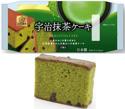 Castella z matchą (ciasto biszkoptowe). Ciasto z wejściem wysokiej jakości matchy z Uji w Kioto. Ma bogaty smak matcha i wyrafinowaną słodycz.