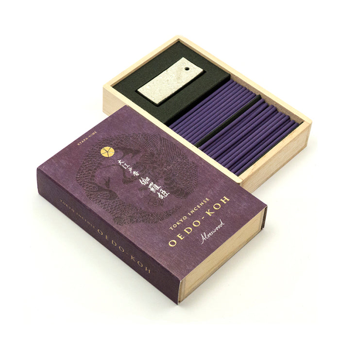 Kolekcja drogocennych japońskich kadzideł Oedo Koh, to prawdziwa perełka sztuki perfumiarskiej. Inspirowana jest duchem okresu Edo, kiedy to wiele dziedzin rzemiosła i sztuki osiągnęło wyżyny wyrafinowania. Zapachy stworzone przez japońskich mistrzów oddają atmosferę dawnej Japonii. Odcienie opakowań nawiązują do tradycyjnych kolorów popularnych w erze Edo. Kadzidła zapakowane są w pudełko z drewna paulowni, ozdobione tradycyjnymi motywami graficznymi. Każde opakowania zawiera cynową podstawkę.